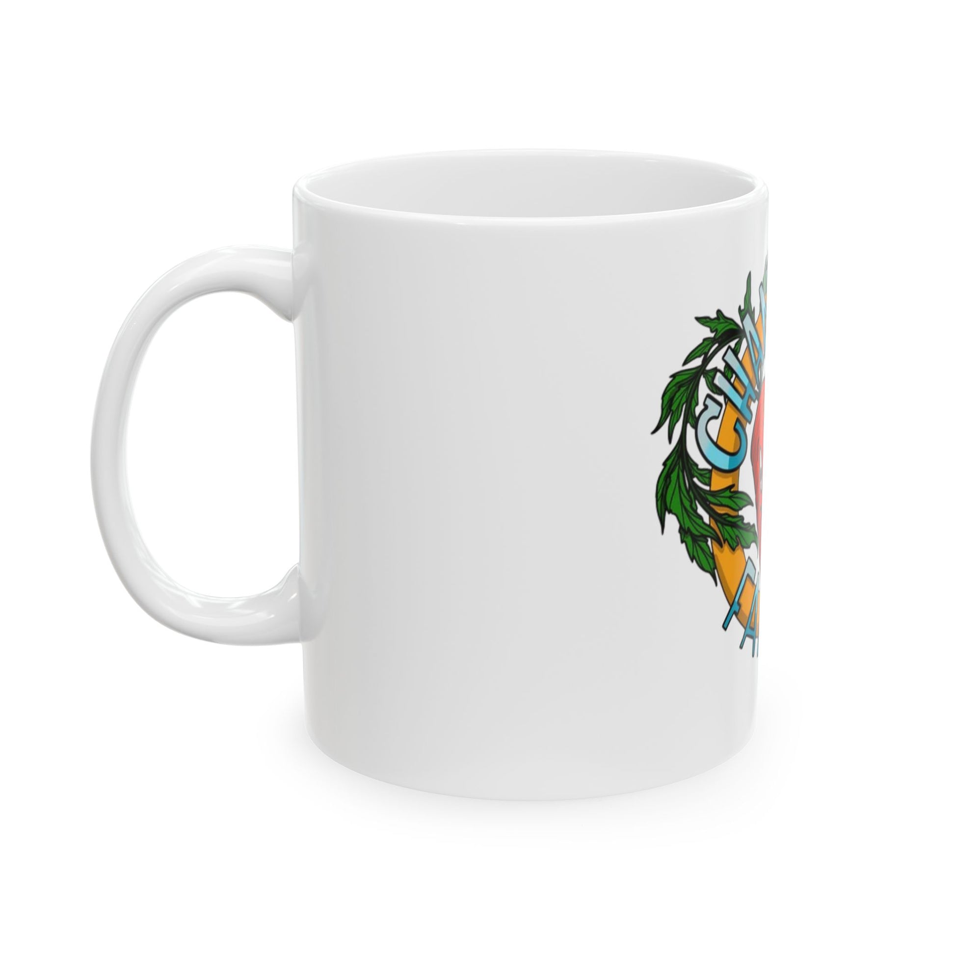 Warm, playful, and a little cheeky — this ceramic mug brings personality to your morning cup. A bright, hand-drawn logo of two smiling veggies framed by leafy greens pops on glossy white ceramic, turning coffee breaks into a moment of joy. The colors stay vivid through daily use, and the comfortable C-handle fits naturally in hand while the shiny finish catches the light. Easy to heat up in the microwave and simple to clean in the dishwasher, this mug is built for real life while keeping its lively charm. Lead- and BPA-free, it’s a reliable companion from first sip to last.