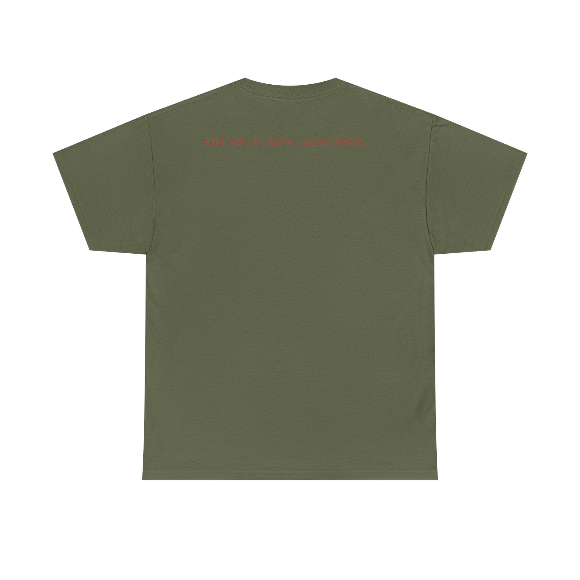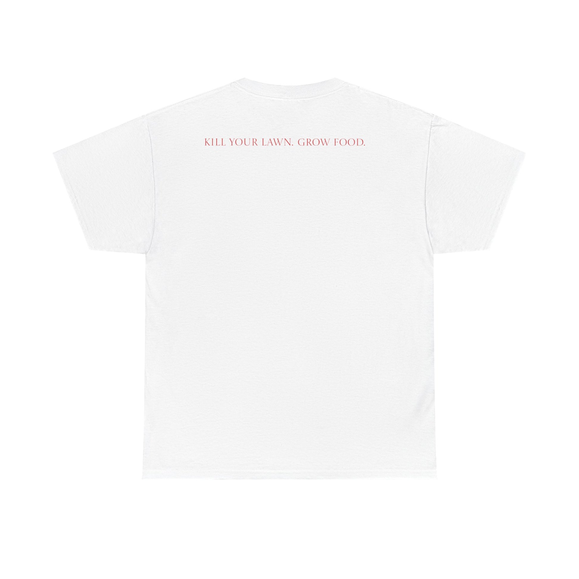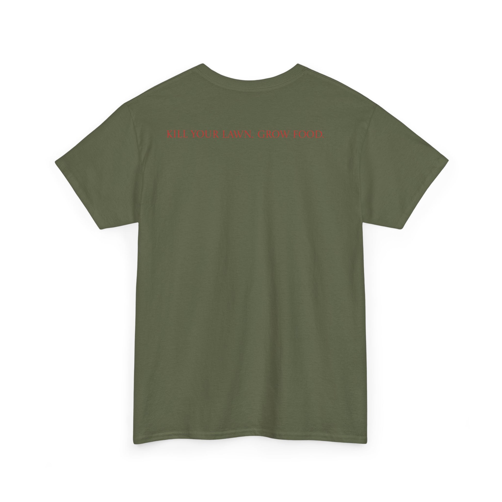 This relaxed crewneck tee brings playful, farm-to-street energy. Soft, midweight cotton carries a colorful, hand-drawn graphic of cheerful veggies framed by leafy vines — a bright splash that reads like "the Golden Arches" of Regenerative Urban Agriculture. The classic fit and ribbed collar sit easy on the shoulders; tubular knit construction and shoulder twill keep the silhouette steady after many washes. Wear it to weekend markets, bike rides through town, or relaxed gatherings where warmth and personality matter more than polish. The small, understated print on the back adds a subtle signature that feels like a secret between you and the maker.