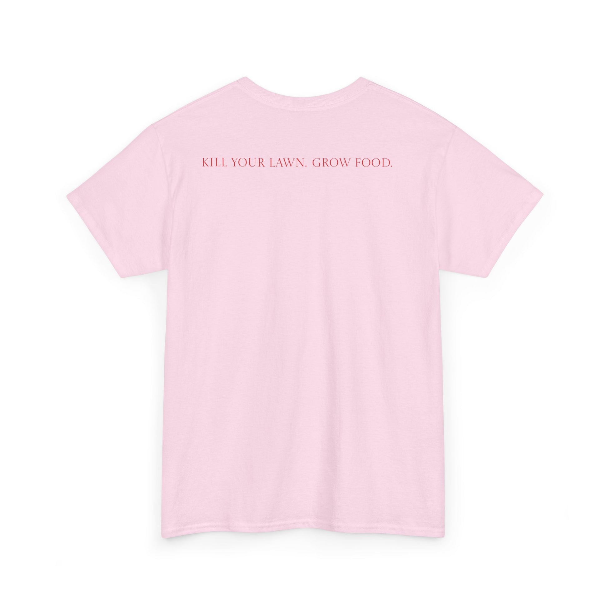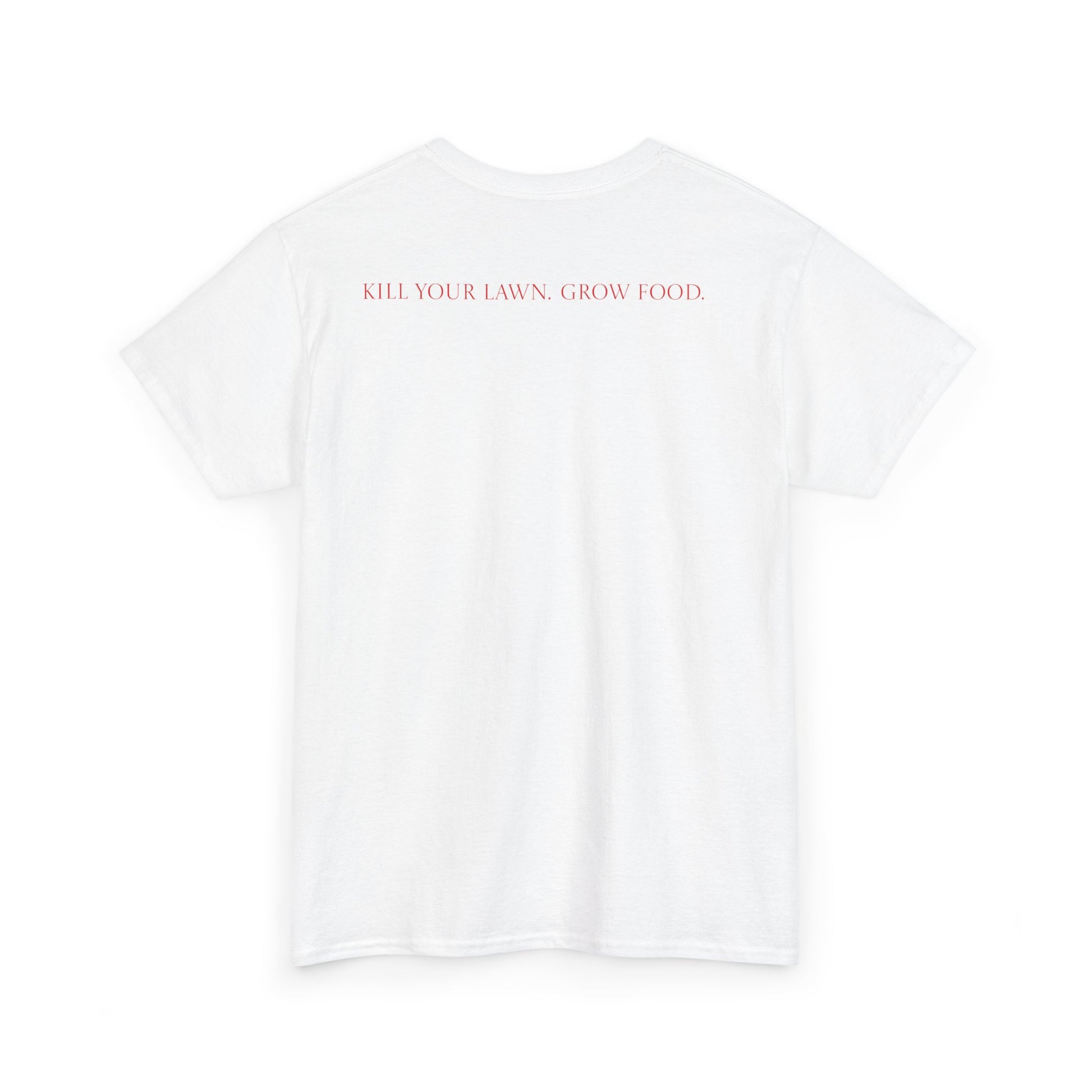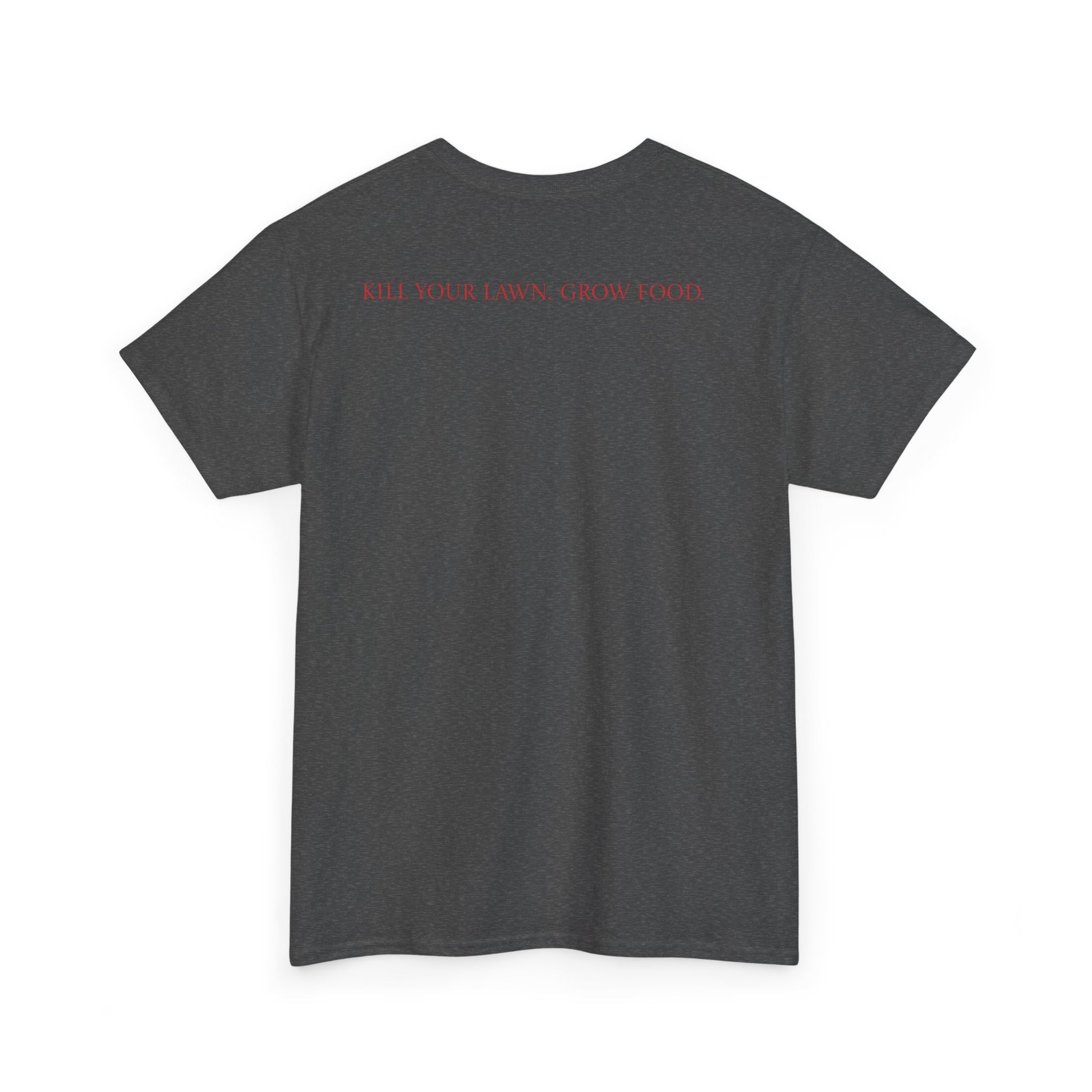 This relaxed crewneck tee brings playful, farm-to-street energy. Soft, midweight cotton carries a colorful, hand-drawn graphic of cheerful veggies framed by leafy vines — a bright splash that reads like "the Golden Arches" of Regenerative Urban Agriculture. The classic fit and ribbed collar sit easy on the shoulders; tubular knit construction and shoulder twill keep the silhouette steady after many washes. Wear it to weekend markets, bike rides through town, or relaxed gatherings where warmth and personality matter more than polish. The small, understated print on the back adds a subtle signature that feels like a secret between you and the maker.