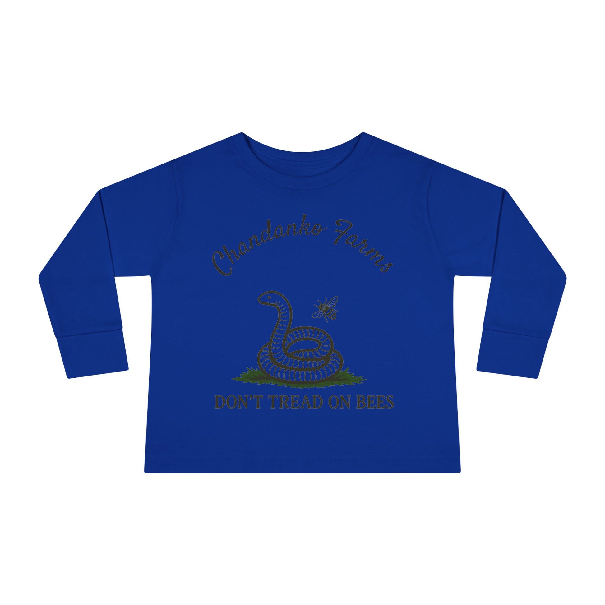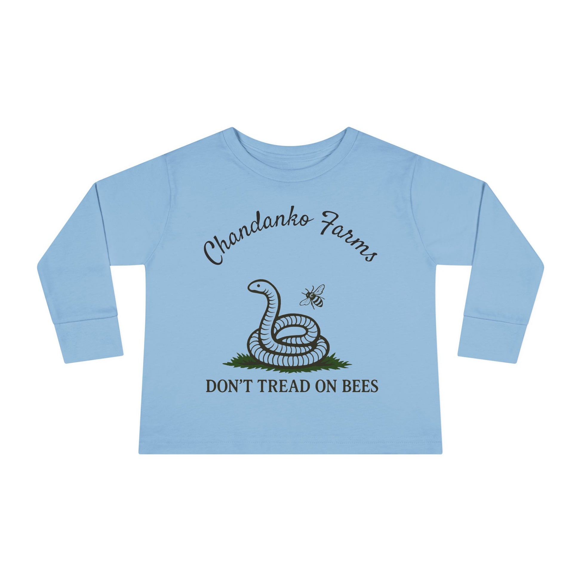 Toddler Long Sleeve Tee — "Don't Tread on Bees" Snake & Bee Nursery Graphic